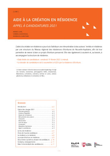 - une aide à l'écriture de 3200€ net, octroyée par ALCA Nouvelle-Aquitaine et versée directement à l’auteur accueilli en résidence (ALCA s’acquittant par ailleurs des cotisations Urssaf afférentes).