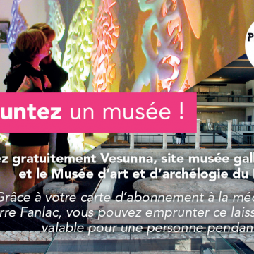 - Ces laissez-passer sont empruntables uniquement avec un abonnement adulte. En effet, l’accès aux musées est gratuit pour les moins de 26 ans habitants de Périgueux, tout comme l’inscription à la Médiathèque.